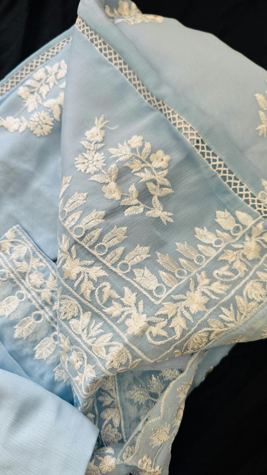 🎨 Color: Sky Blue | 🧵 Fabric: Chiffon | ✨ Style: Fully Embroidered