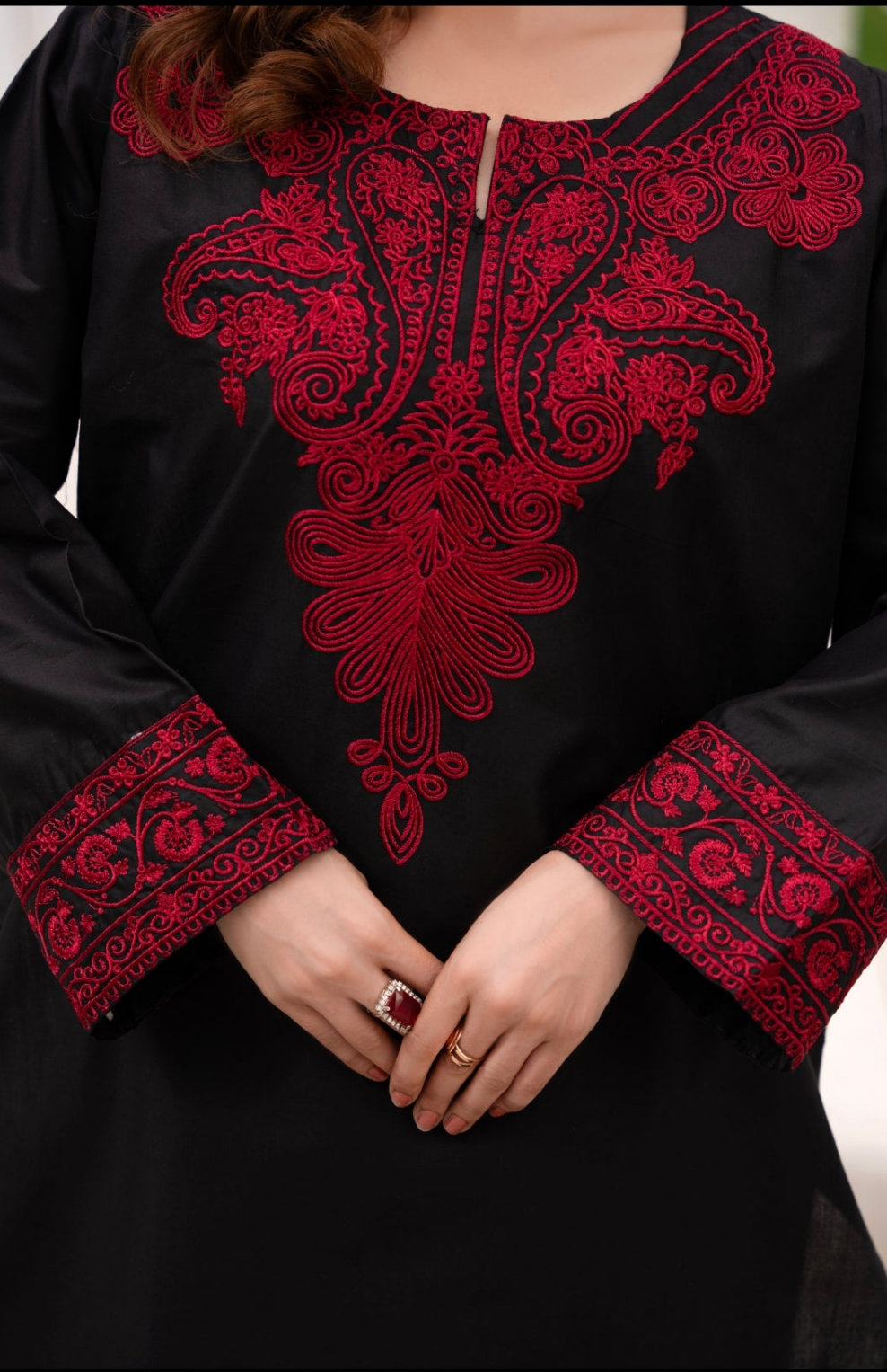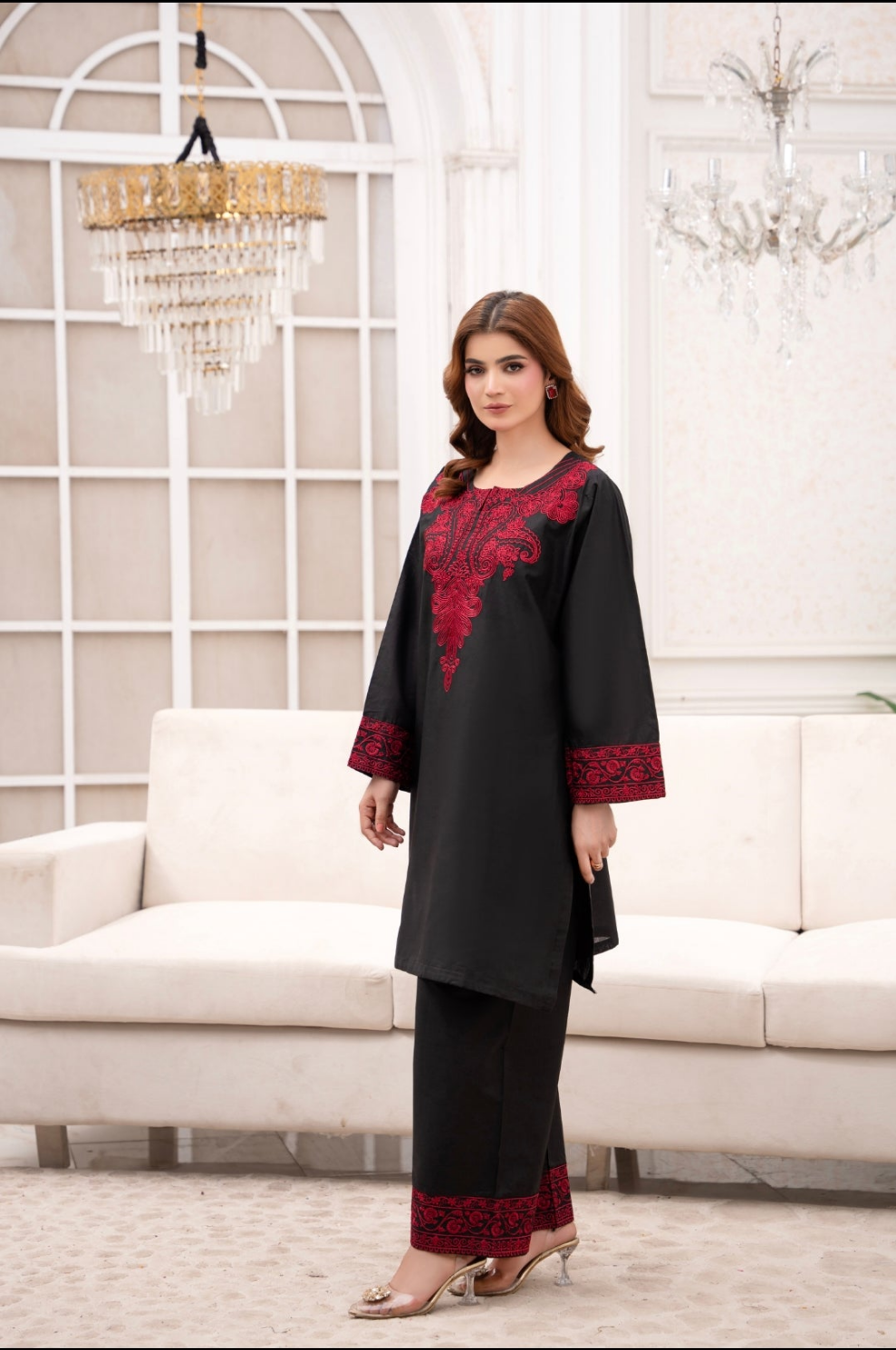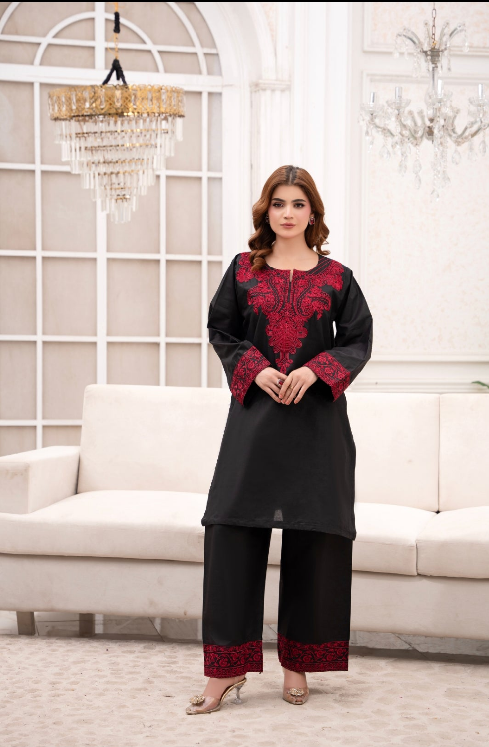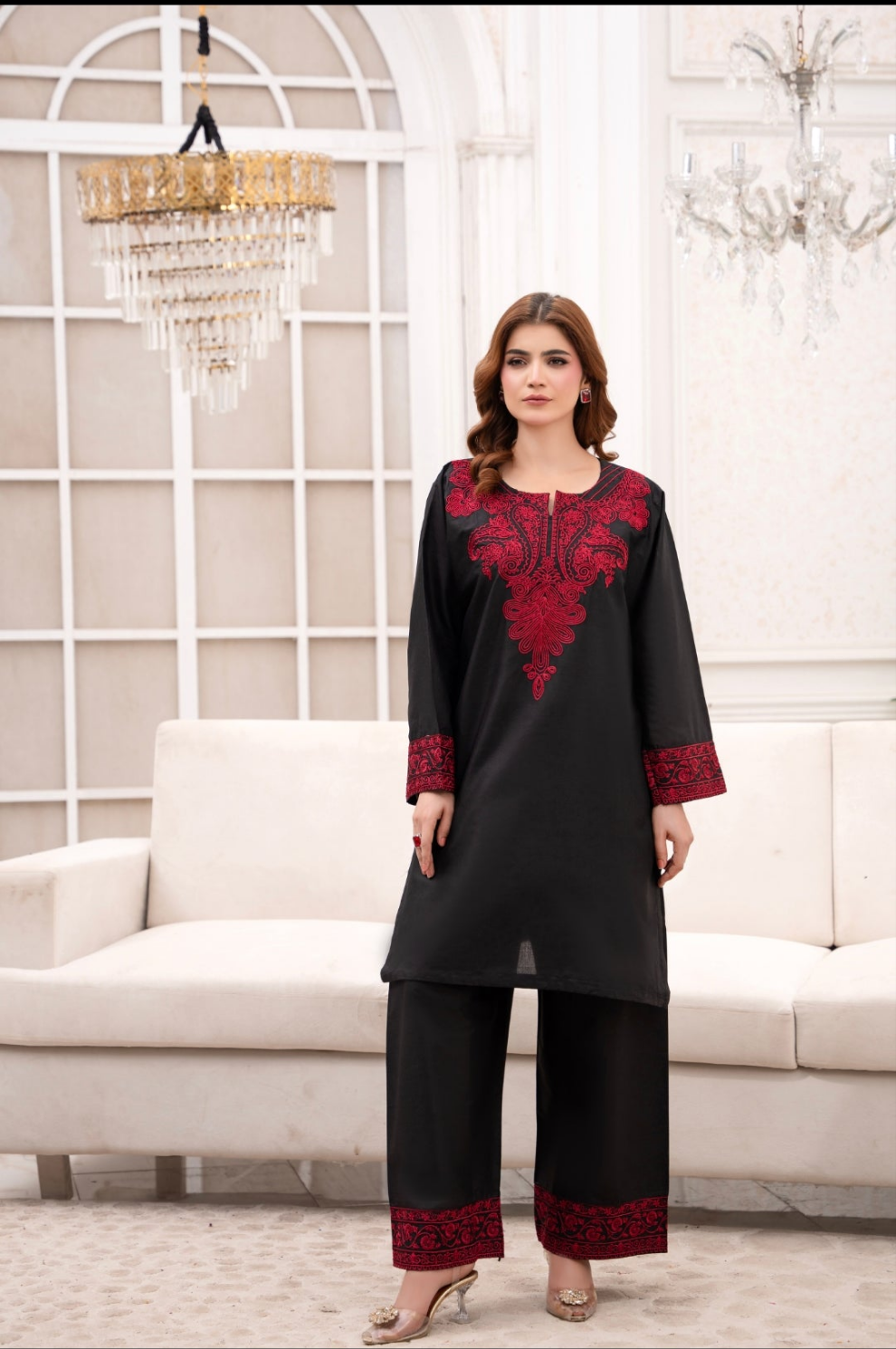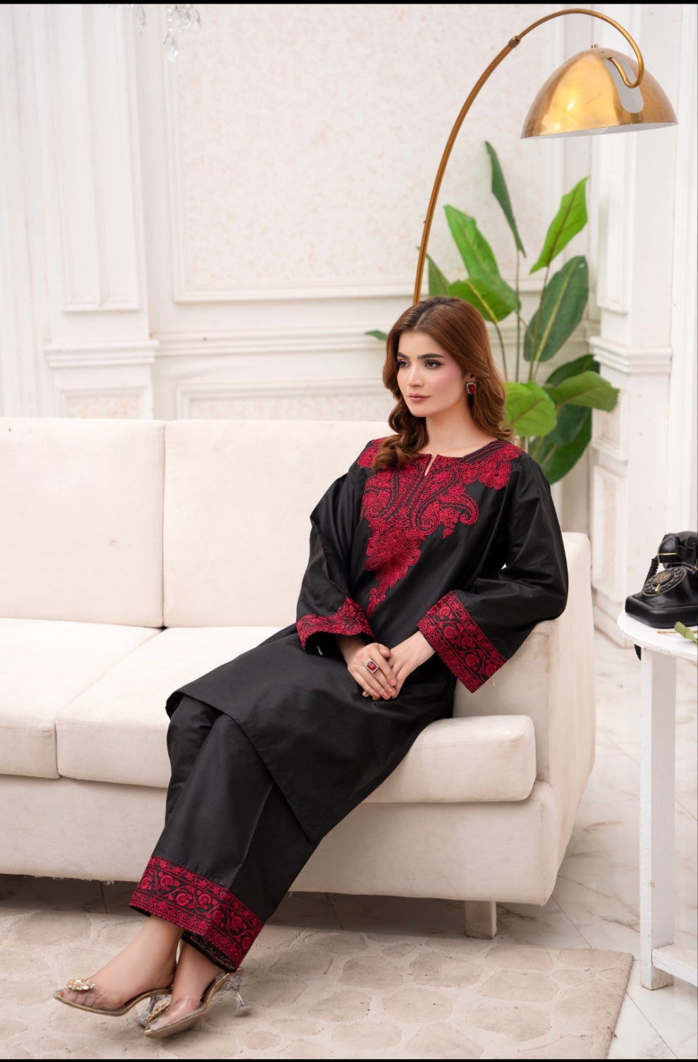 Stay stylish and cozy this winter with Black Heart. Made from soft winter cotton fabric in a deep black tone, this 2-piece embroidered outfit brings warmth and elegance together. Perfect for winters, casual outings, or small winter gatherings