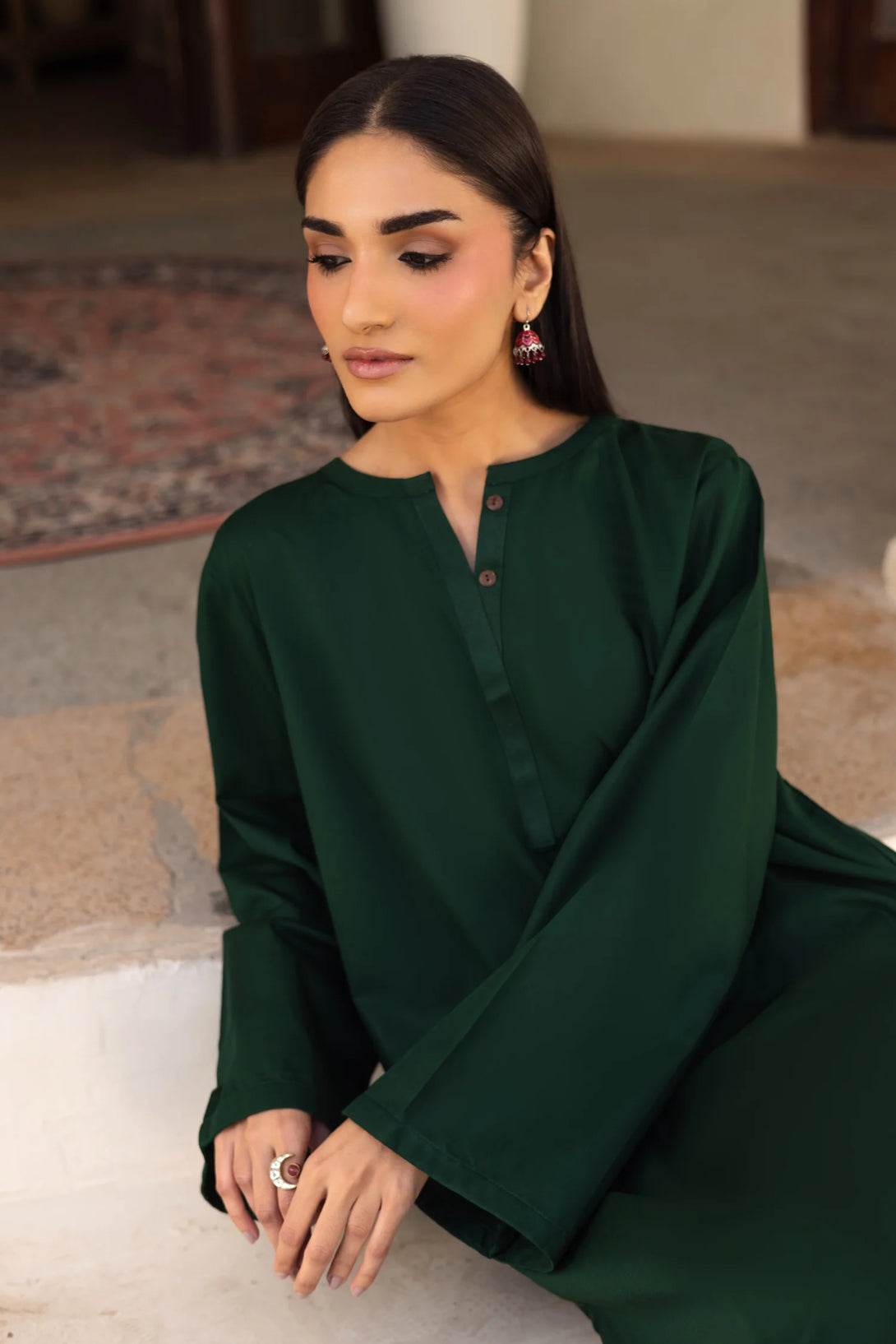 🎨 Color: Bottle Green | 🧵 Fabric: Premium Khaddar | ✨ Style: Solid with Lace Detailing