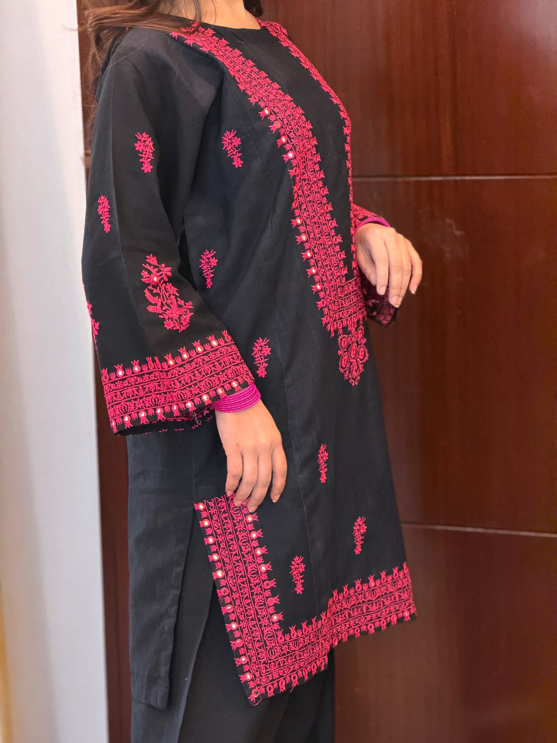 | 🧵 Fabric: khaddar | 🌸 Work: Embroidered Shirt & Embroided farshi shalwar