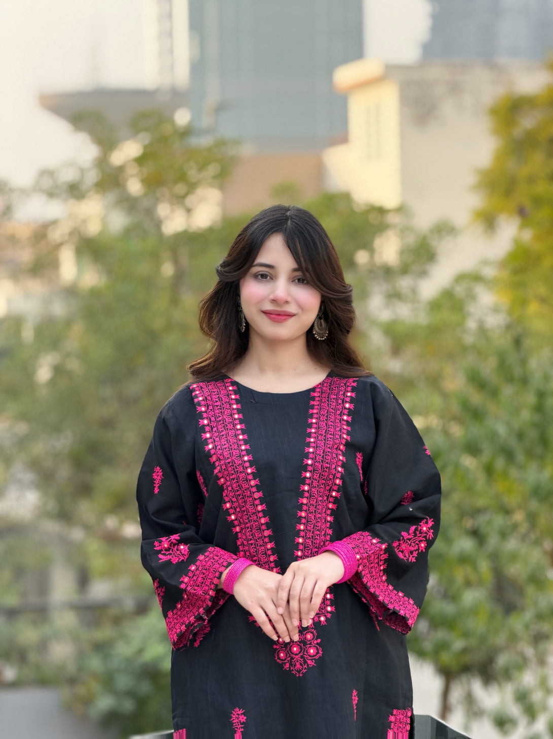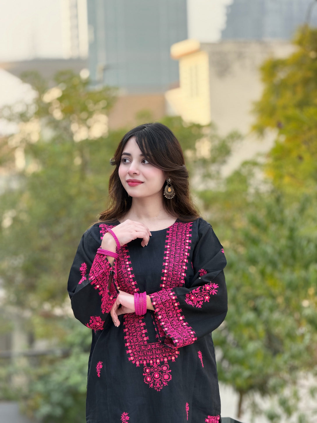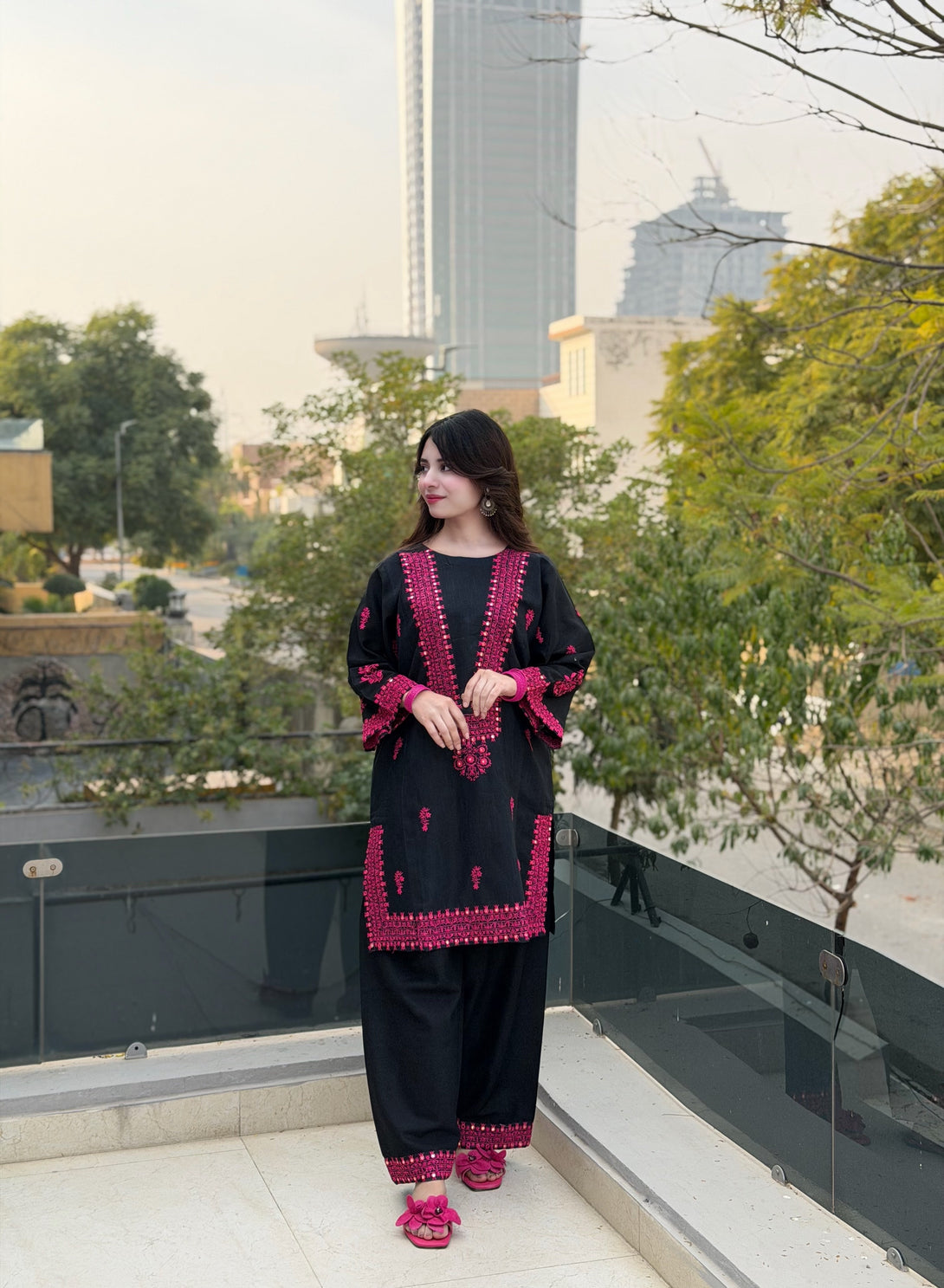 Step into timeless elegance with ghulaboo Crafted from premium khaddar, this 2-piece set features delicate embroidered shirt paired with a Farshi Shalwar . Its breathable yet warm fabric makes it a perfect choice for the current and coming winter season — stylish, graceful, and comfortable all day long.
