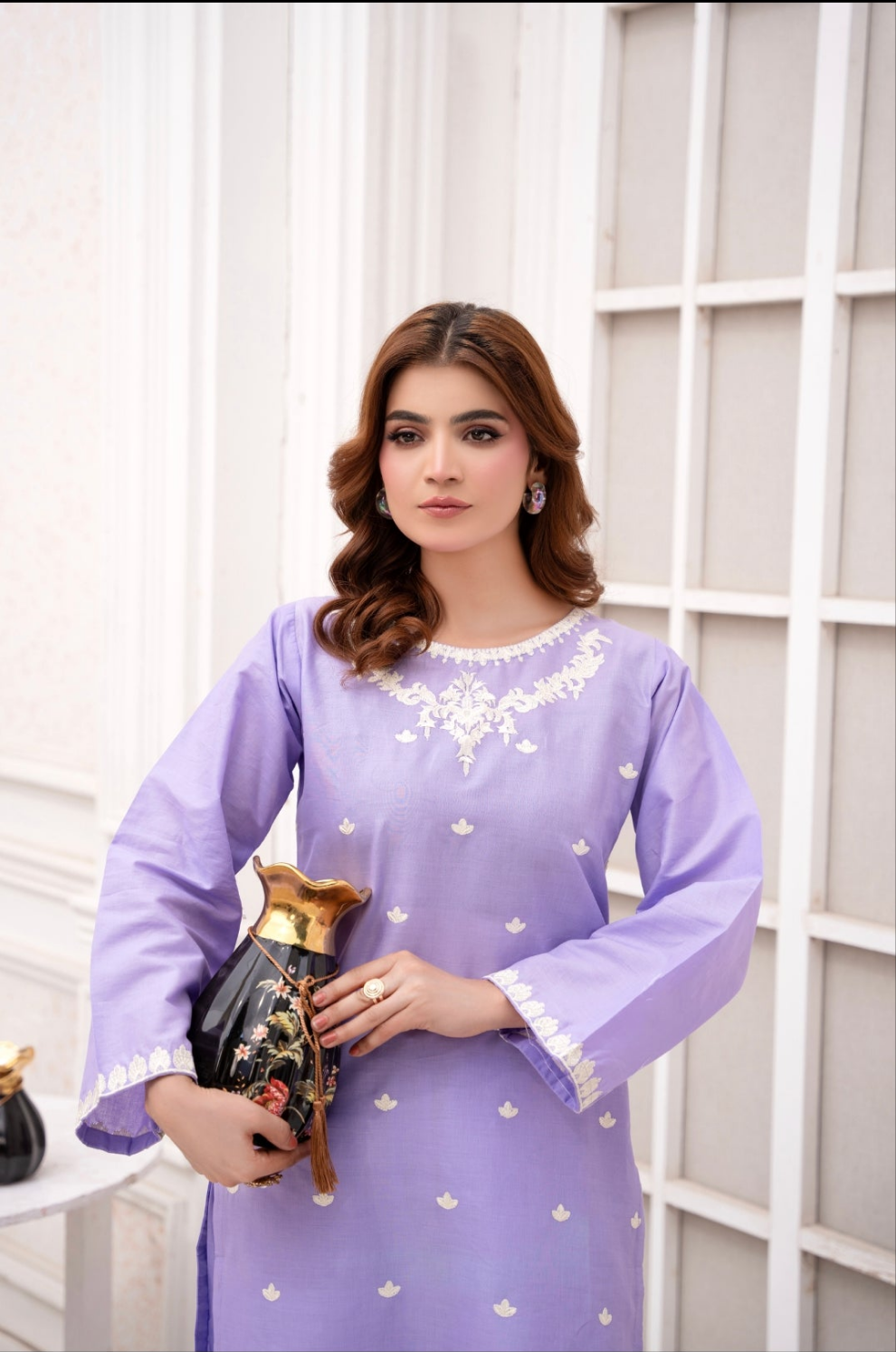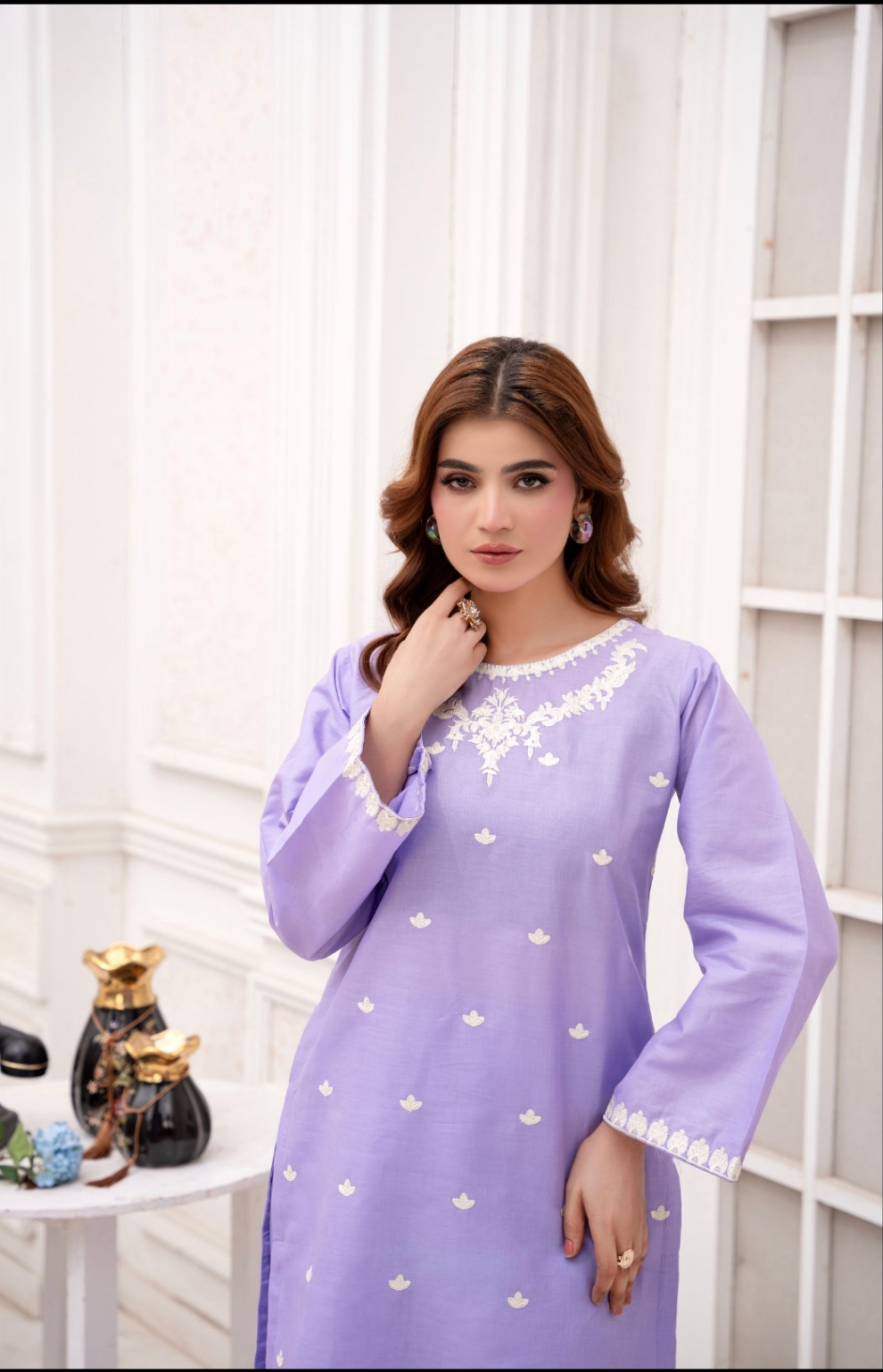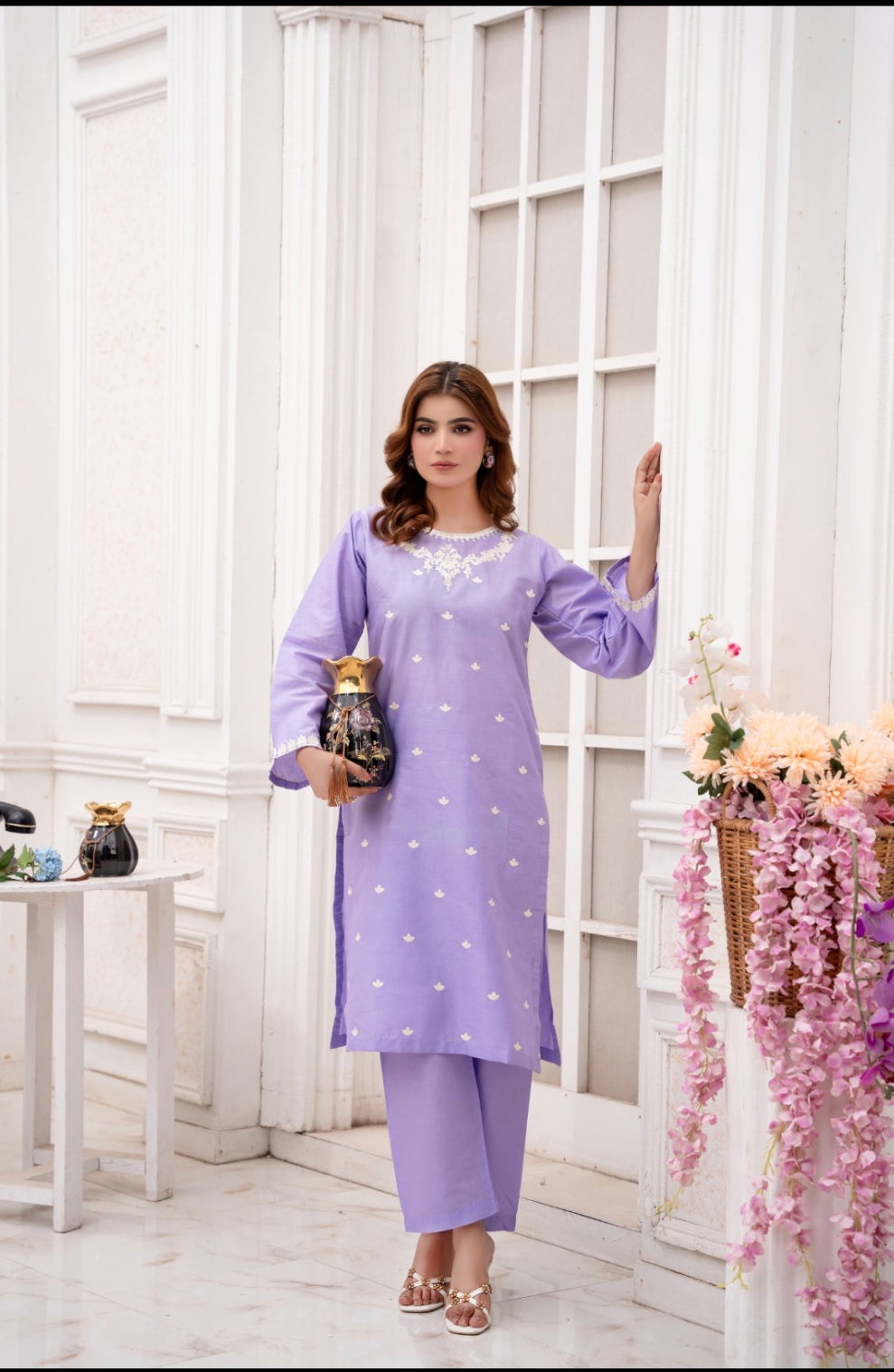 🎨 Color: Lilac Purple | 🧵 Fabric: Winter Cotton | 🌸 Style: Embroidered