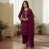 Introducing Nayva a beautifully crafted 3-piece cotton suit designed for effortless grace and all-day comfort. Made from soft and breathable cotton, this ensemble is perfect for staying cool while embracing timeless elegance. The shirt is adorned with delicate embroidery across the front and subtle detailing on the neckline and sleeves, adding a refined and feminine touch. Paired with a matching trouser and a lightweight dupatta, Navya offers a complete and polished look. Ideal for daytime gatherings, casual meet-ups, and intimate festive moments —Navya blends simplicity with understated charm.