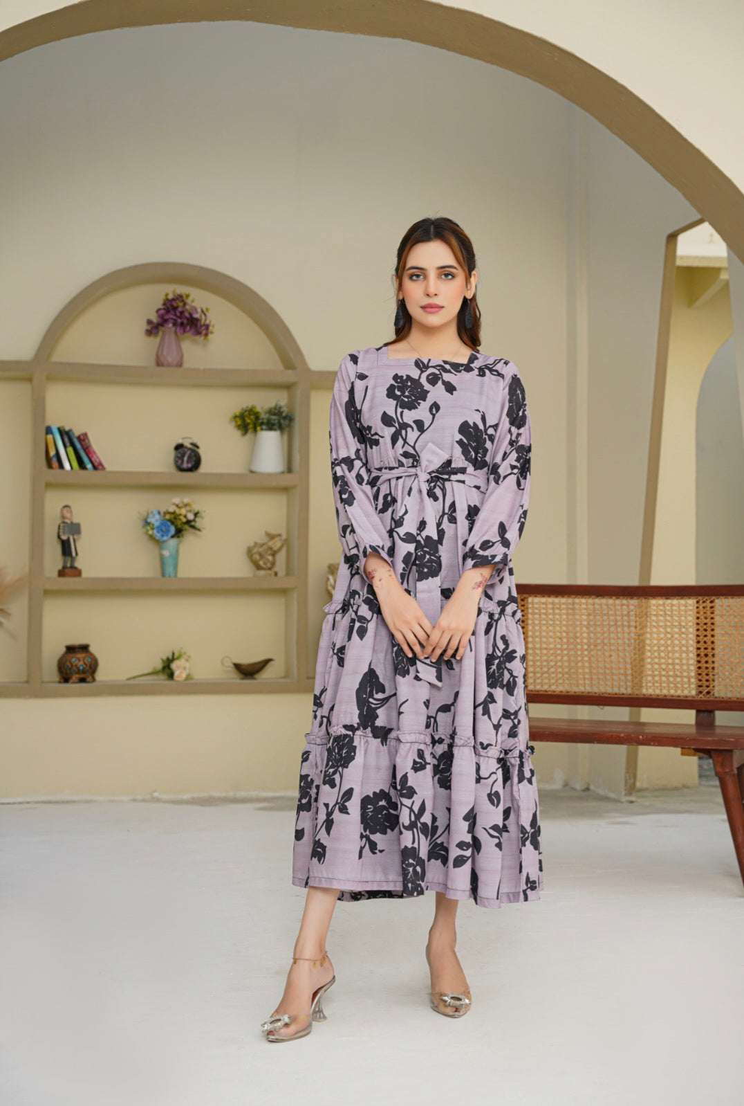 Bring a touch of modern elegance to your wardrobe with Noir. Crafted from soft poly cambric in soothing grey tones, this stitched long frock features a beautiful digital print that adds a fresh and stylish look. Light, comfortable, and graceful — perfect for the coming season.