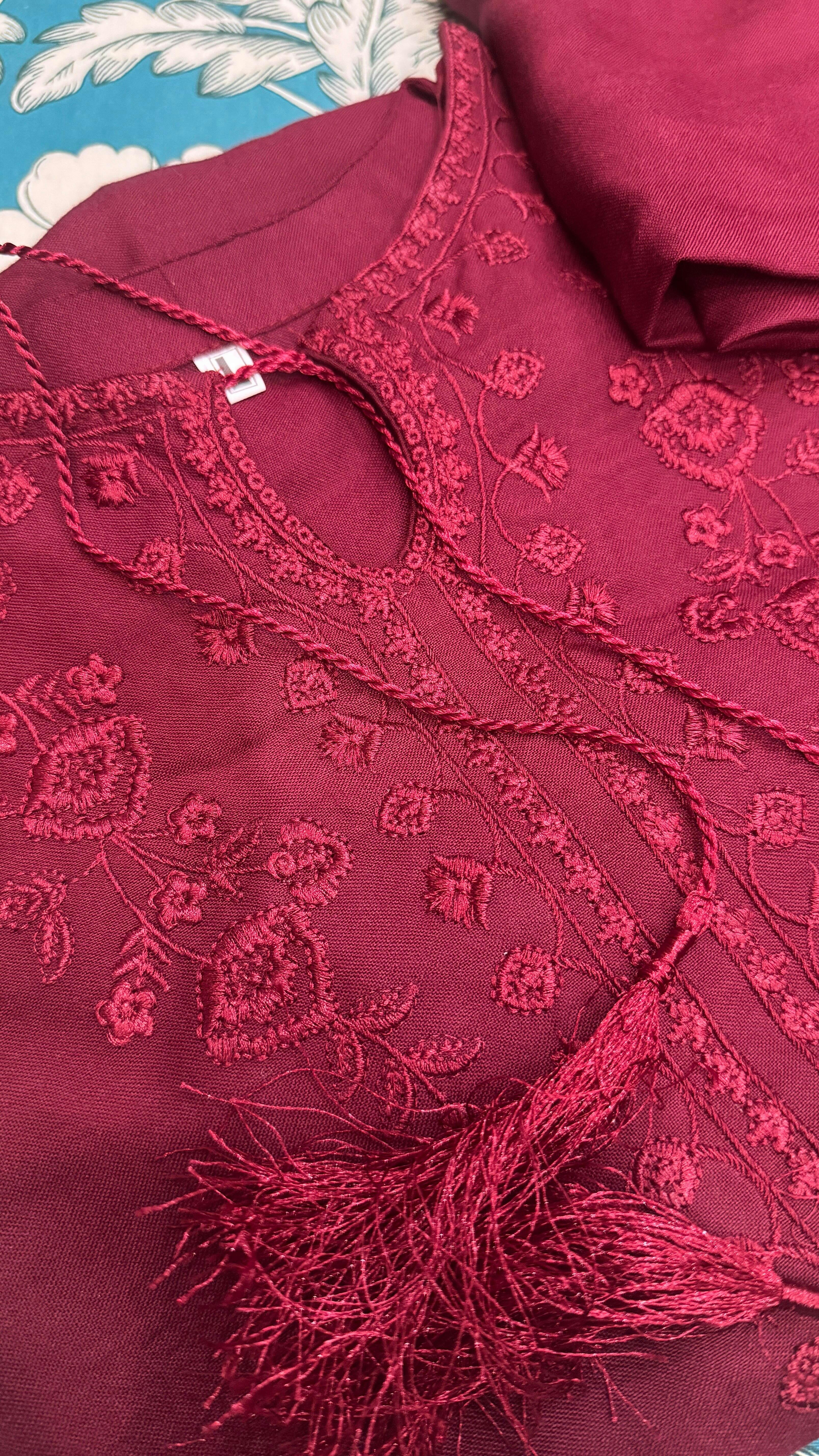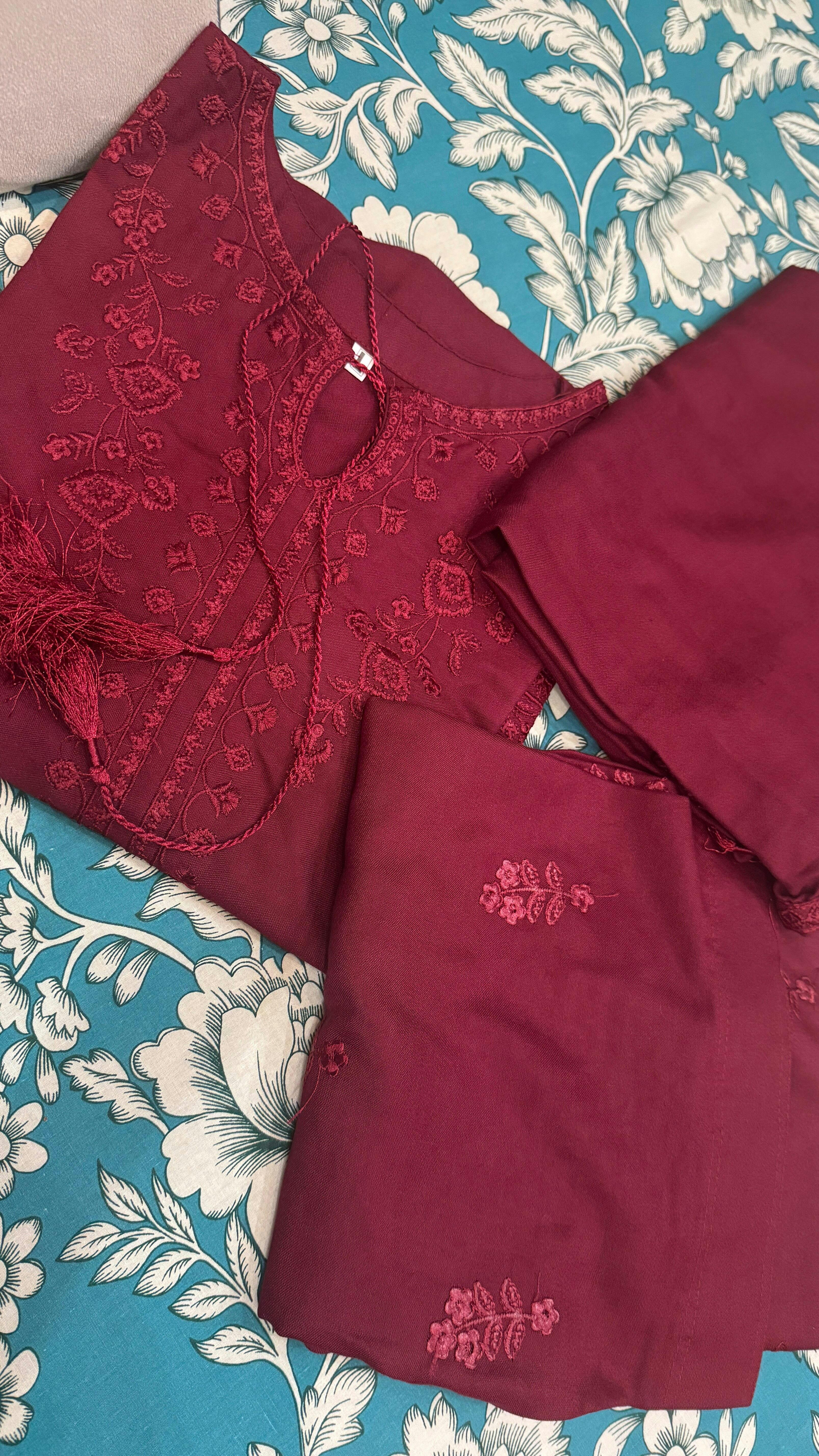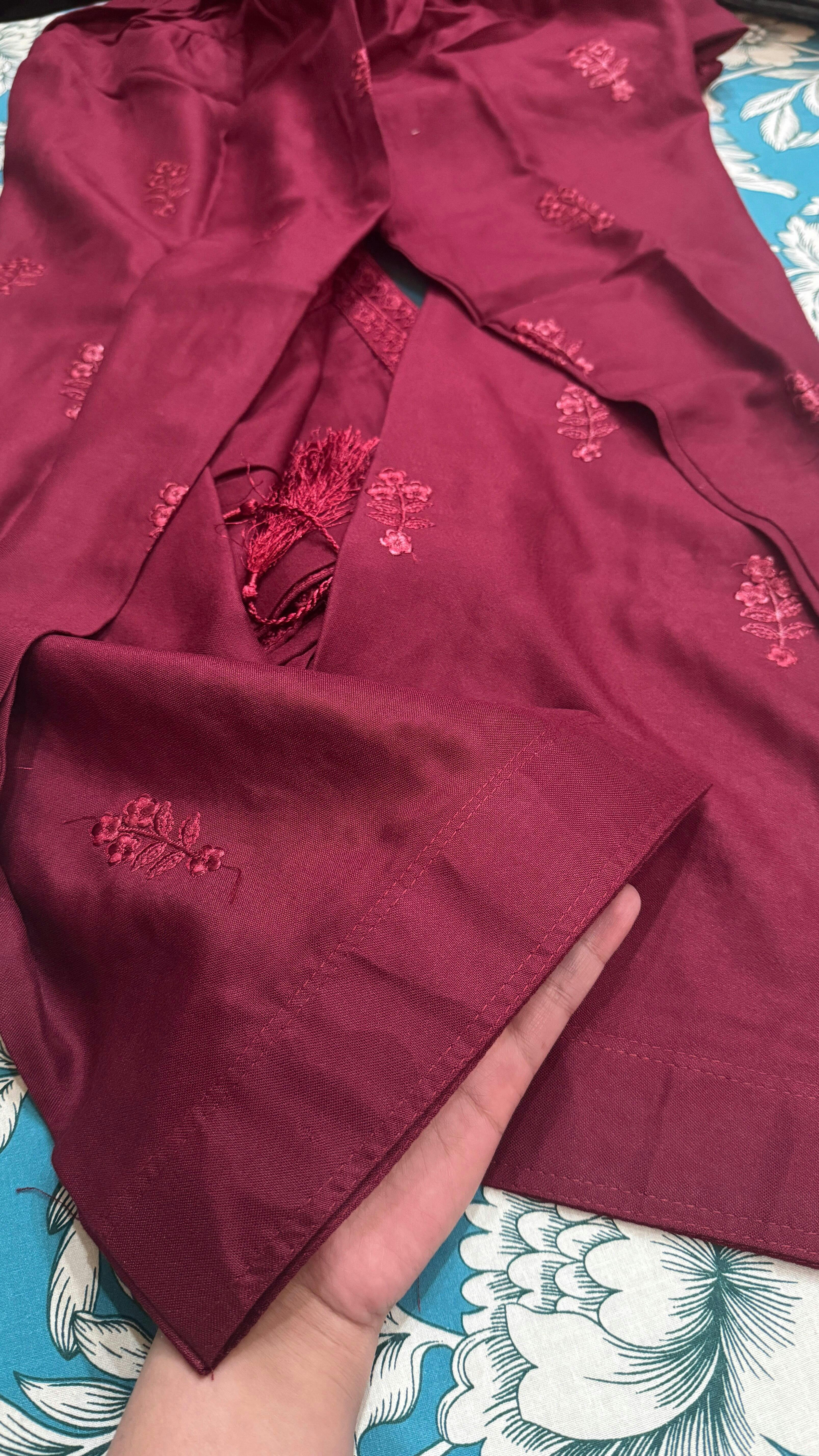 🎨 Color: Maroon | 🧵 Fabric: Winter Cotton / Dhanak | ✨ Style: Embroidered with Winter Shawl