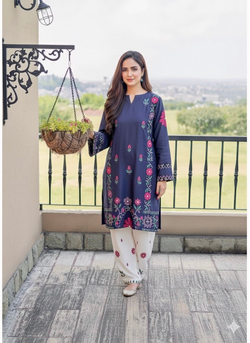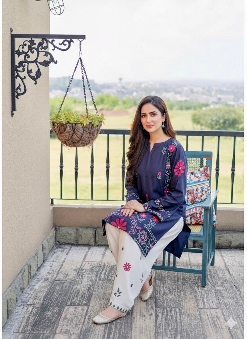 Unlike a standard frock, the Sunitaa is a complete outfit, featuring a beautifully embroidered long frock/kameez, complementing bottoms, and a matching dupatta, giving you a perfectly coordinated look. The intricate embroidery is a testament to timeless elegance, making this ensemble ideal for weddings, festivals, and grand occasions.