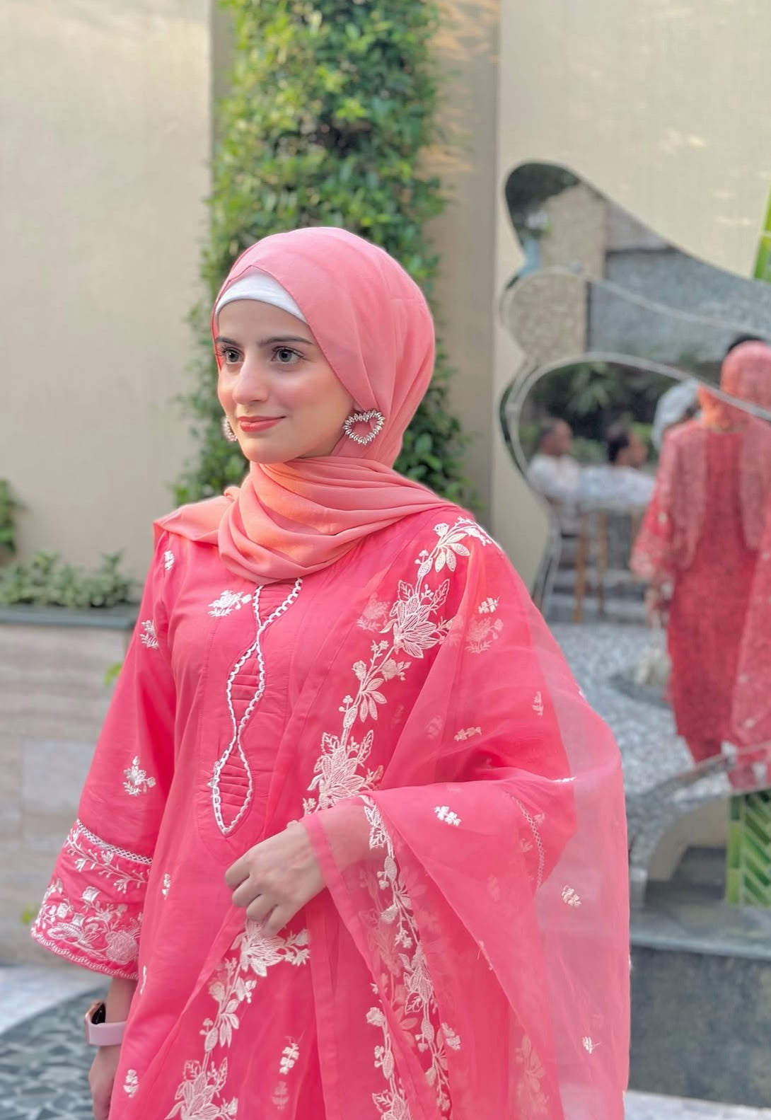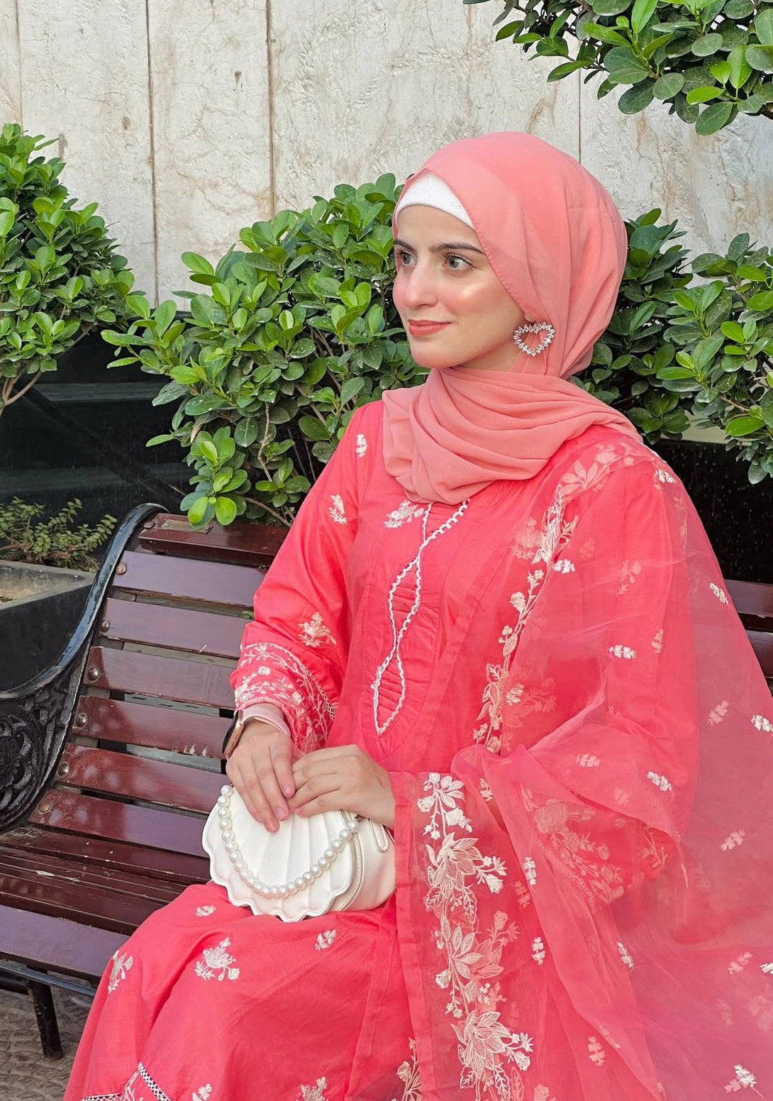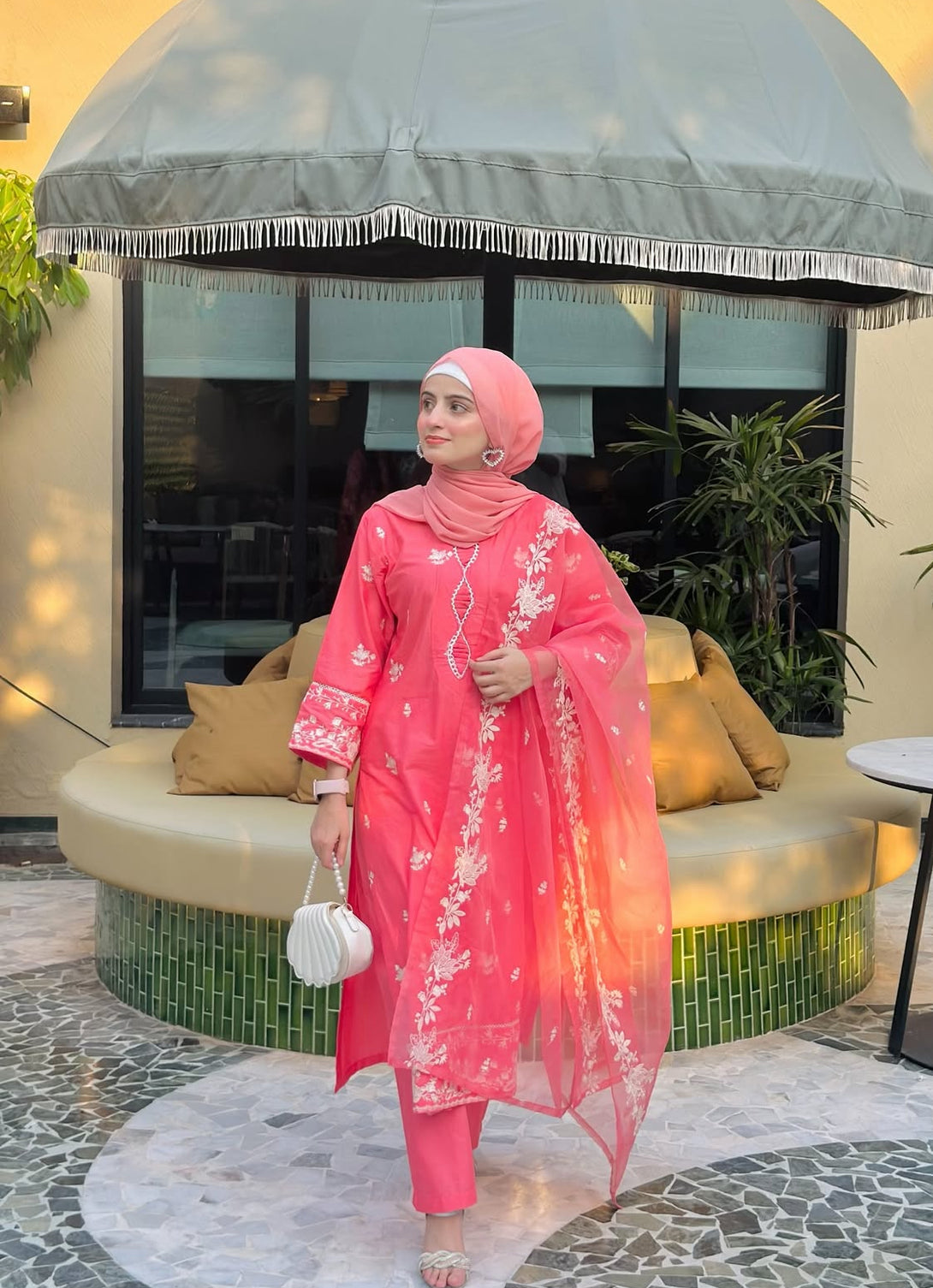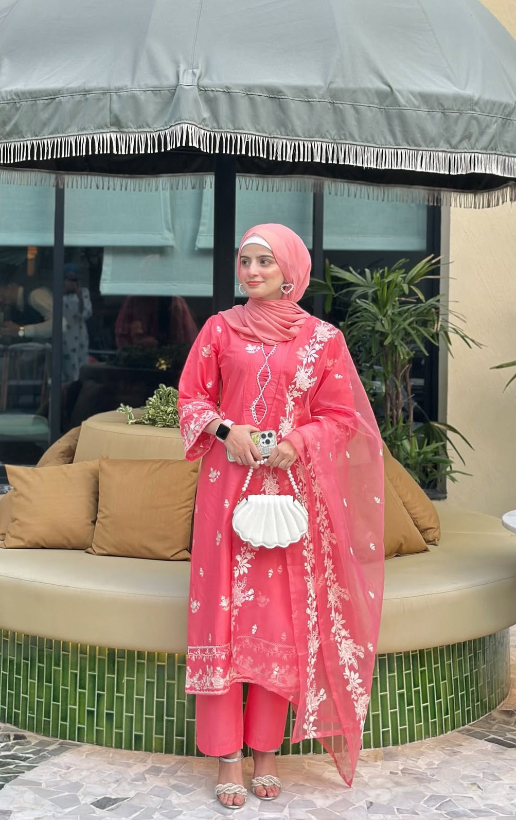 Teapink 3pc Stitched Suit with Embroidered Dupatta